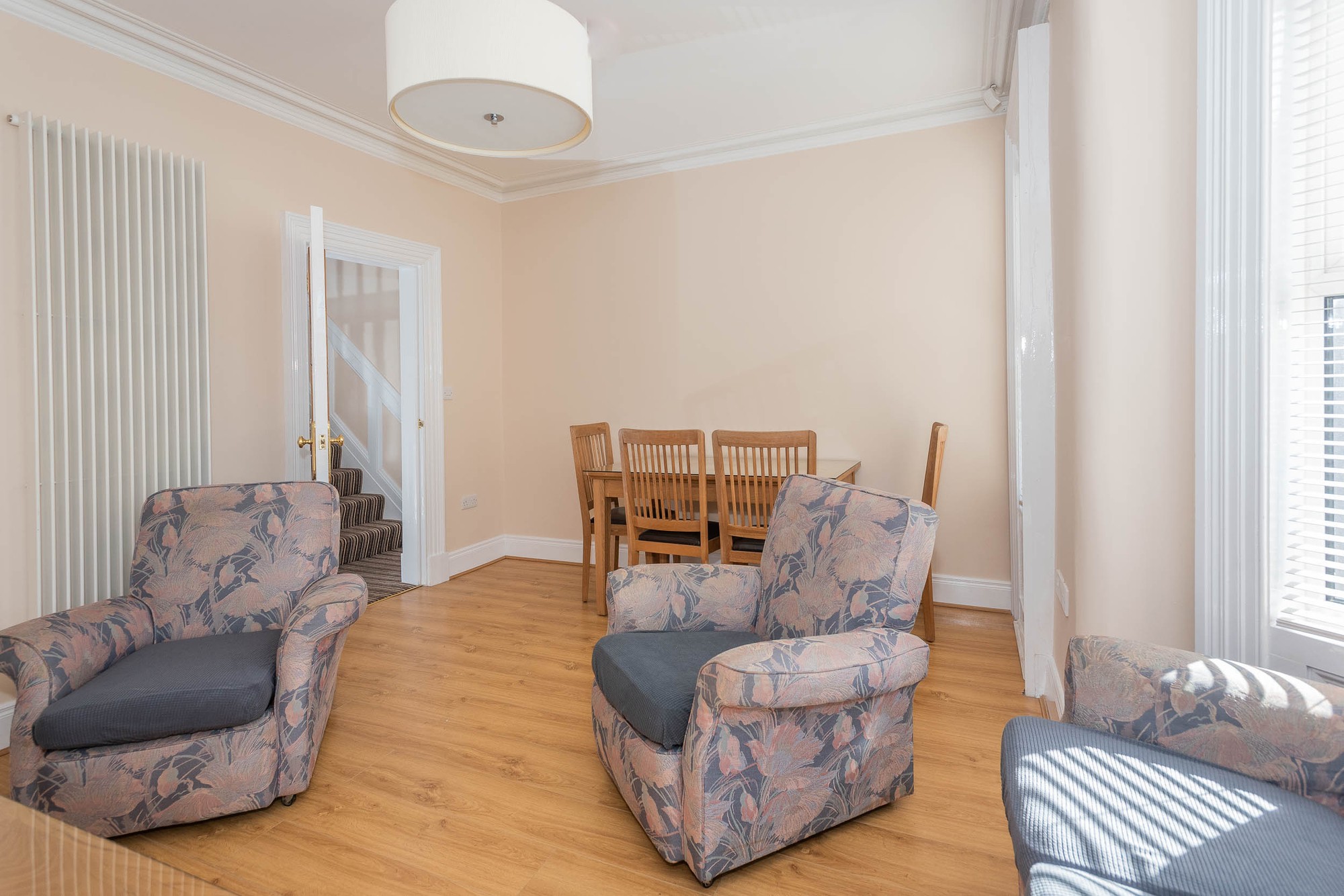 This immaculate first floor duplex style apartment is situated just off the Ormeau Road, close to Queens University,and is convenient to city centre. The excellent spacious lounge has wooden flooring throughout, modern style kitchen with an array of built in appliances, including double fridge freezer, integrated four ring hob and conventional oven. The spacious shower room is complimented by a newly installed pedestal wash hand basin, wc and wc and modern tiling. The top floor is complimented by two well proportioned and presented bedrooms. All in all a superb newly modernised apartment in a popular sought after location. Early viewing would be advisable.